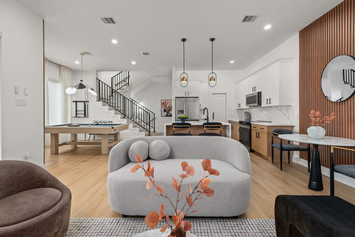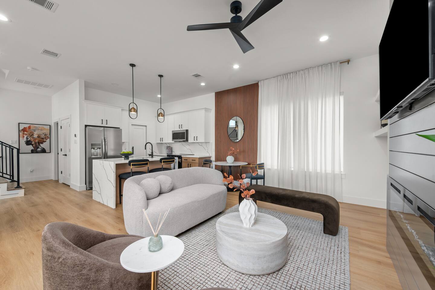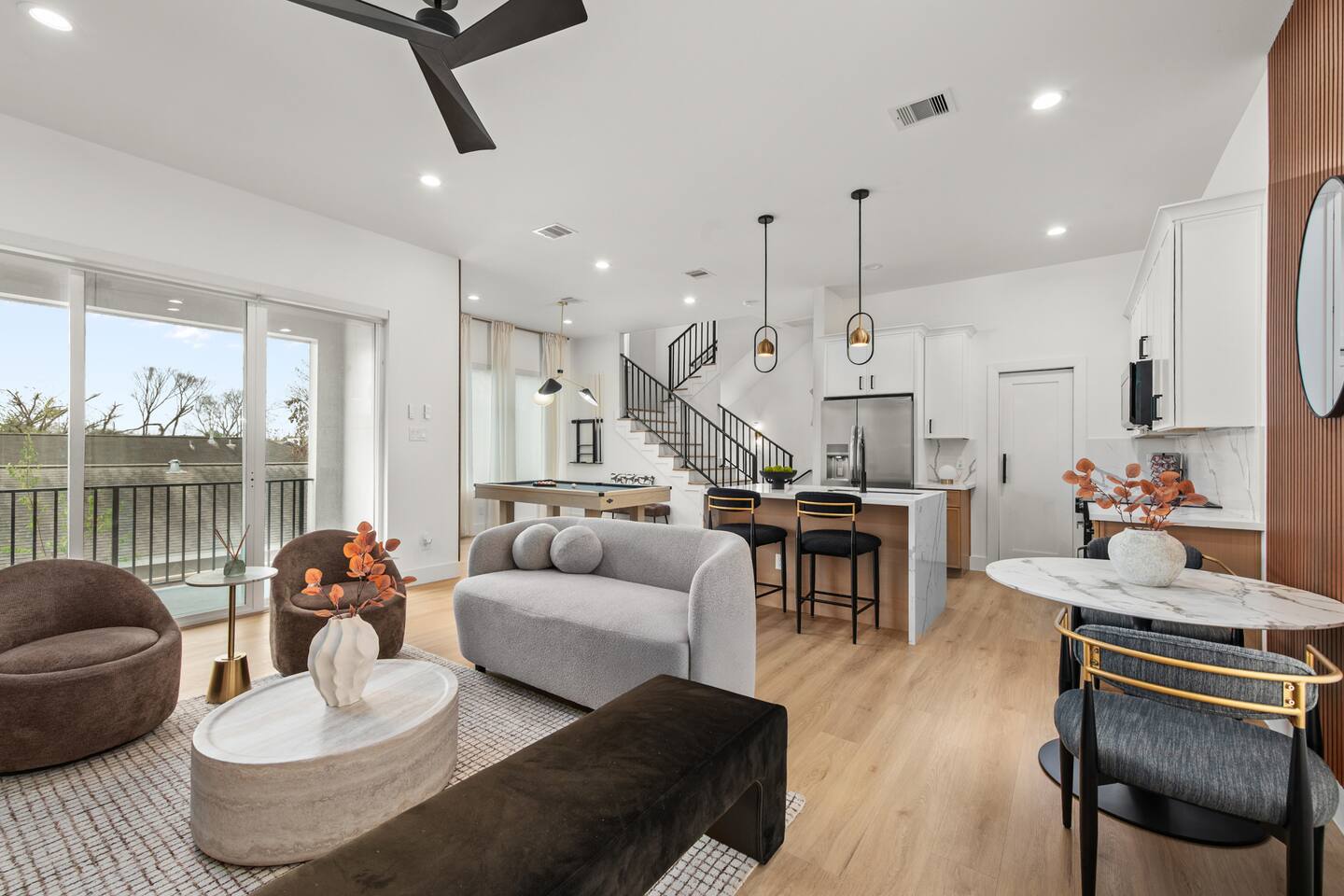 🛏️ 3 bedrooms | 3.5 bathrooms (1st floor Queen, 3rd floor King + 2 Doubles) 🚗 2-car garage 📺 Smart TVs in living room & all bedrooms 🔥 Indoor fireplace & 🌇 Private rooftop 🍳 Fully equipped kitchen & 🧺 in-unit laundry 🎱 Pool table & life-size chess 🏋️ Exercise equipment Centrally Located: 📍 East River 9 (Golf & Pickleball) ~ 7 min 📍 Downtown / Toyota Center ~ 9 min 📍 George Brown Convention Center ~ 9 min 📍 Daikin Park (Astros) ~ 8 min 📍 Museum District & Houston Heights ~ 10 min 📍 NRG Stadium ~ 14 min 📍 Texas Medical Center ~ 15 min 📍 Hobby Airport ~ 20 min | IAH ~ 25 min Drive times are estimates and may vary by traffic.